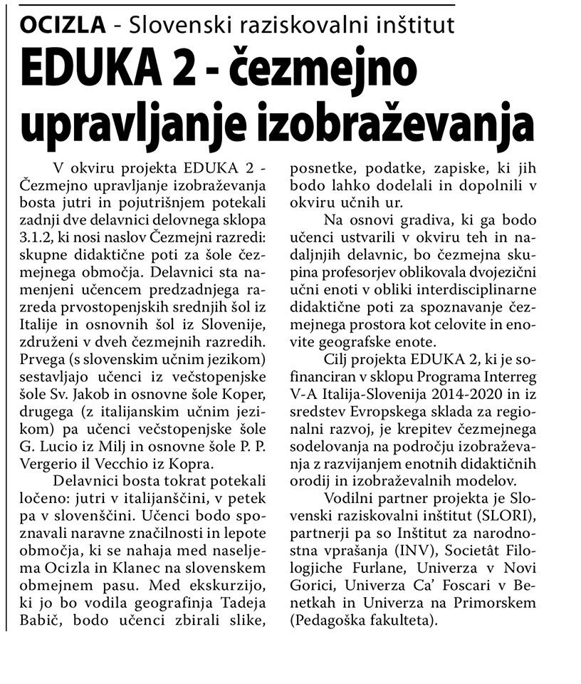 Articolo "EDUKA 2 - čezmejno upravljanje izobraževanja"