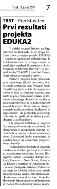 Articolo "Prvi rezultati projekta EDUKA2"