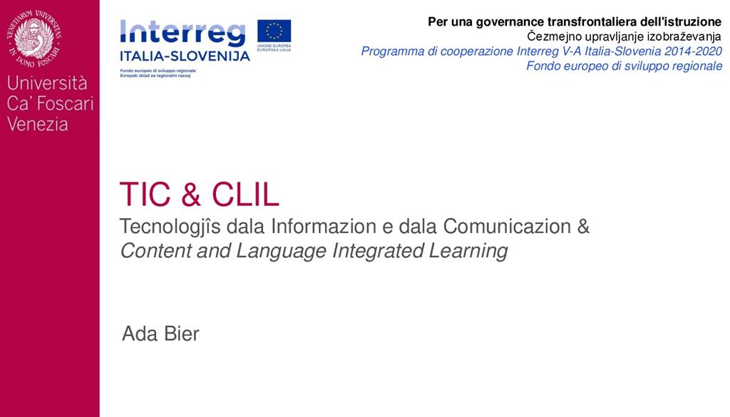 L'Università Ca' Foscari ha ripreso l'analisi del tema sviluppato nel corso dei due incontri precedenti e relativi all'uso delle TIC in CLIL, coinvolgendo attivamente i docenti presenti. In particolare, l’attenzione dei docenti è stata indirizzata nuovamente verso il digital storytelling e il suo possibile utilizzo in un contesto CLIL.