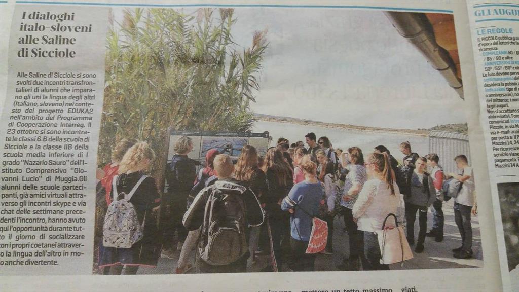 Članek o dveh čezmejnih srečanjih med šolami iz Milj, Trsta in Sečovelj na OŠ v Sečovljah in Sečoveljskih solinah.