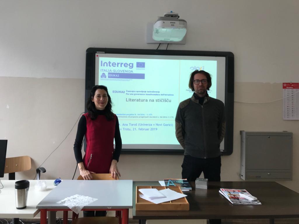 Predstavitev dveh antologij o manjšinski literaturi in literaturi obmejnega območja ter dveh digitalnih literarnih pešpoti po Tržaškem in Goriškem za pouk književnosti.